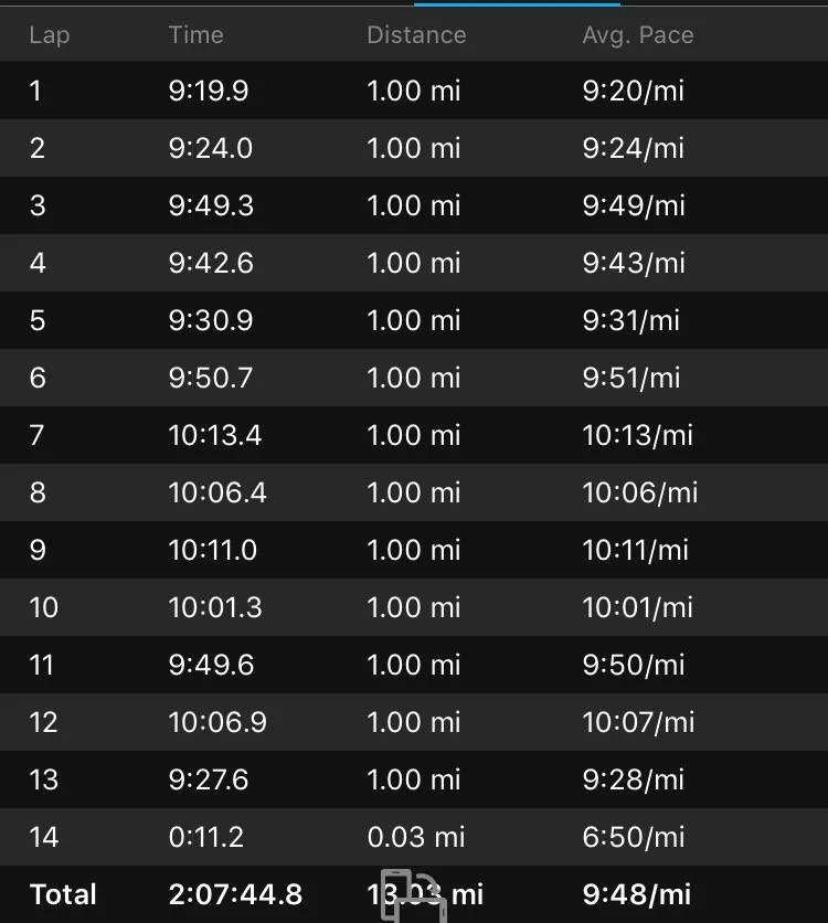 The second lap really sucked, because that it when my legs started to get tired and I had to pass the finish line turn for one more round. I also had no spectator support on lap 2 and 3 except for the Cobb Mobb tent, so I kept an eye our for teammates on the course to cheer them. I also started to feel belly cramps at this point, and I knew a period poop was coming on since I wasn’t able to do it this morning. I refused to stop and lose time to a port a potty again, but there were a couple of times where it came close. I started to get some mid back pain too, but I though that may have been due to slouching, so I made it a point to sit up with shoulders back. Looking back now, that may have been lady day related too, I don’t know. The last lap I told myself it was time to get ready to push. I had a finish line in site, and there would be a port a potty! At mile 10 I tried to push, but the legs were tired. I got out my 100mg caffeine gel and took it. The last mile was the hardest, it was so long! I pushed as hard as I could at that point, but with half a mile, I feel fatigue. No, I thought, I’m almost there! I try to push, but the power won’t come. I steadily slow down against my will until I see the Y for the finish line. The excitement that the end is right there gave me enough umpff to push to finish. I remember smiling so hard going towards that finish line! No tears because I’m glad to be finished this time, but pride instead."